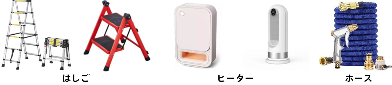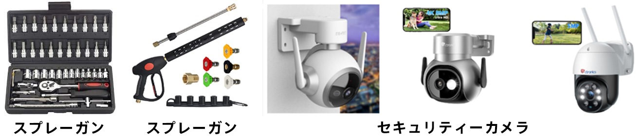 ヒーター、セキュリティーカメラ、セキュリティーディスプレイ、はしご、釣り用ブラケット等。